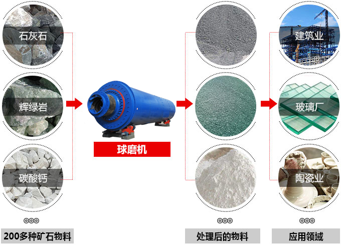 各種礦石和其它可磨性物料進行干式或濕式粉磨